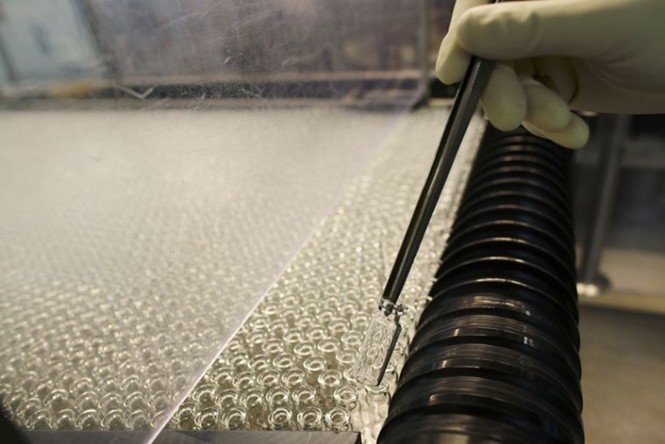 下面是一張用疫苗填充小瓶的生產線的照片,但首先需要清潔這些小瓶。靜電會導致污垢和灰塵黏在小瓶子內。這是GEN4超級風刀靜電消除器的常見用途,它可以消除靜電,然後提供去除灰塵和污垢的力量。然後您可以將其推到空中並使用下吸式系統進行處理。就像裝瓶生產線一樣,他們用薄蓋蓋住小瓶,您可以使用相同的產品來消除靜電,將缺陷降至最低。