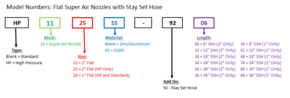 EXAIR提供可搭配使用的可繞性固定軟管,方便調整噴嘴角度與方向。使用者可手動調整噴嘴,使氣流精確對準目標,定位後軟管會固定不動,保持穩定吹氣效果。軟管長度從 6 吋(152mm)到 36 吋(914mm) 不等,並提供兩種連接形式,可依型號搭配不同的噴嘴。