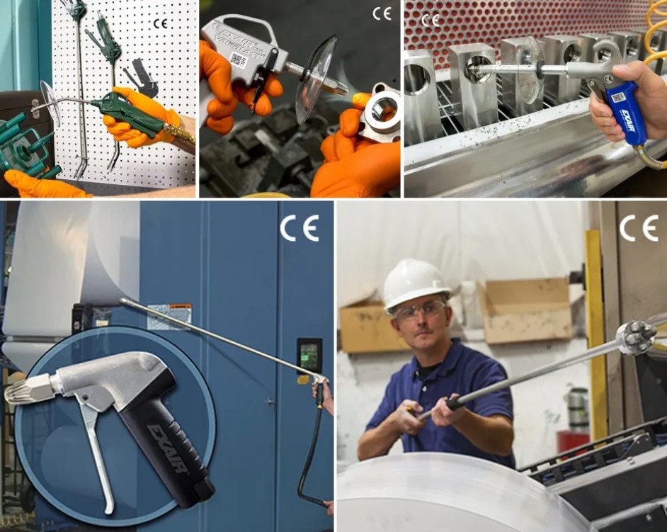 無論是手動清潔小零件,或是大面積吹除雜物,EXAIR 都有適合各種應用的安全氣槍。