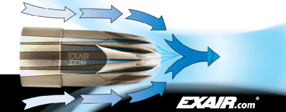 EXAIR超級空氣噴嘴的空氣引流效果示意圖: