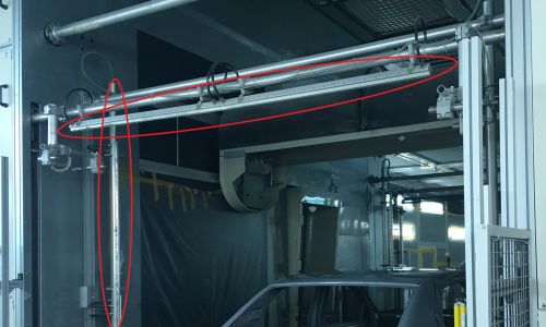 解決方案可以非常有效乾燥車身,他們只需要報價,以便他們可以在新工廠中安裝完全相同的產品。由於這是一個已安裝多年的超級風刀(氣刀),因此它們安裝較舊的長型超級風刀(氣刀),它由兩只短超級風刀(氣刀)銜接組合在一起。2014年,EXAIR 開始以單一形式製造長型超級風刀(氣刀)可提供高達108英寸長度!!)。